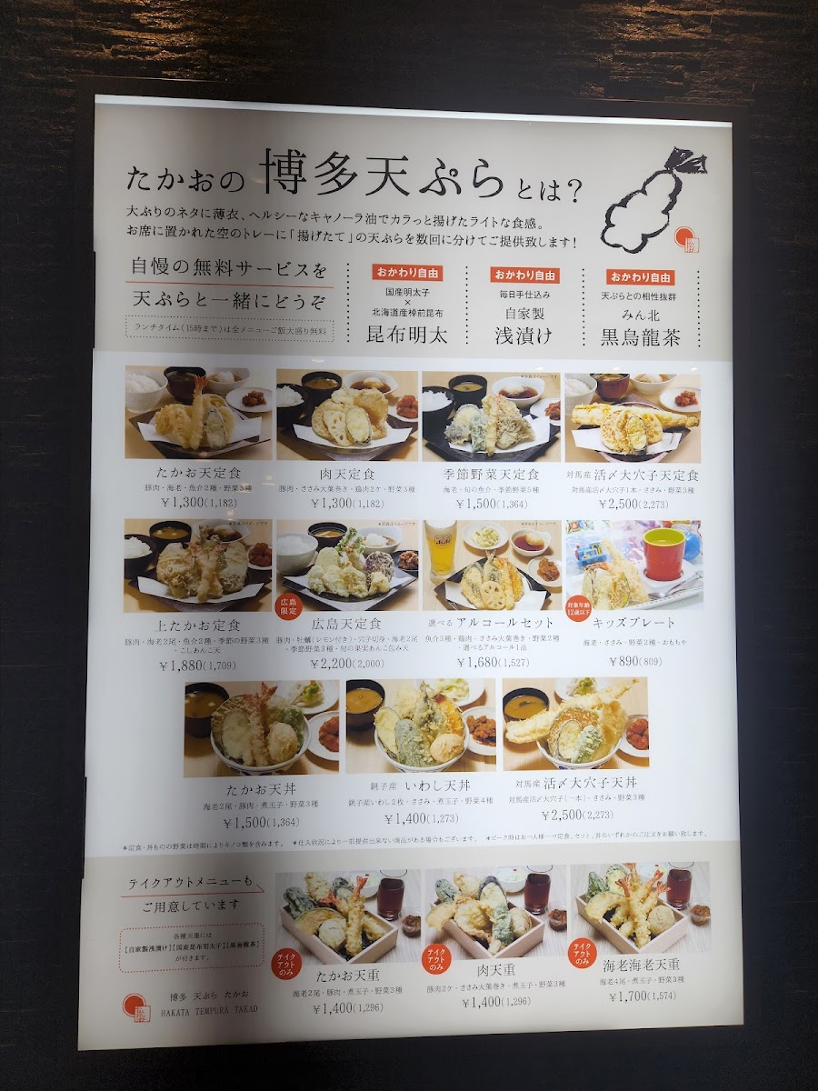 Nestled in the heart of Hiroshima, Tempura Takao serves up a delightful experience for tempura lovers. Each dish is a celebration of freshness, with “たかお定食” featuring a balanced array of meat, fish, and vegetables, all fried to crispy perfection and served piping hot in three delightful rounds. Customers rave about the thick, juicy tempura, complemented by the option of dipping sauces like ten-tsuyu or flavored salts.